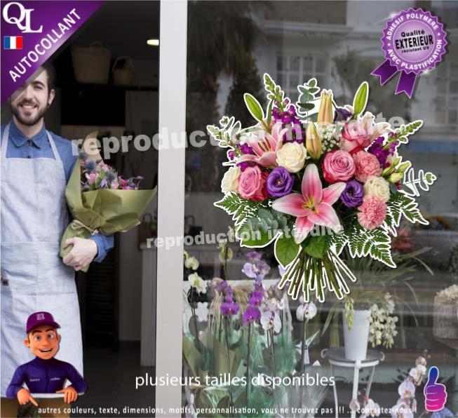 1. Sticker vinyle adhésif BOUQUET FLEURS FLEURISTE lys, rose, oeillets, fougère.... autocollant