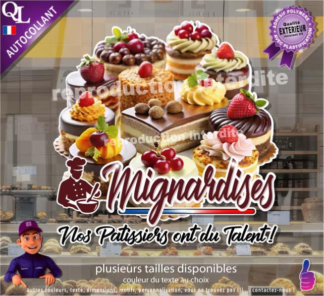 1. Sticker vinyle adhésif MIGNARDISES nos pâtissiers ont du talent
